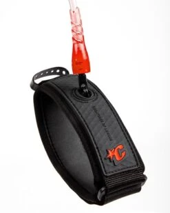 CREATURES OF LEISURE Reliance Bicep Leash – Clear Red Coil/ Black Cuff